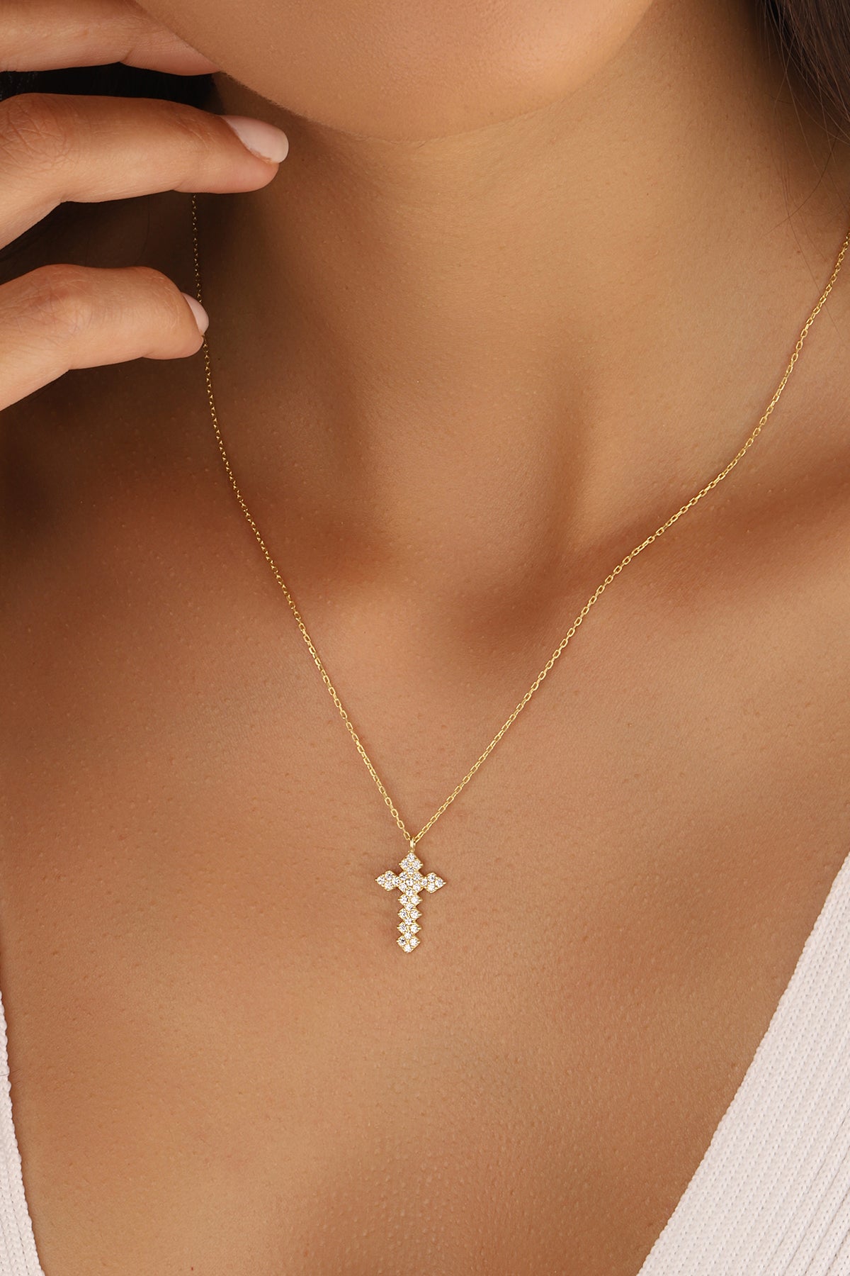 Lite kors med kubisk zirkon / dåpsgave / nattverd / julegave / religiøs