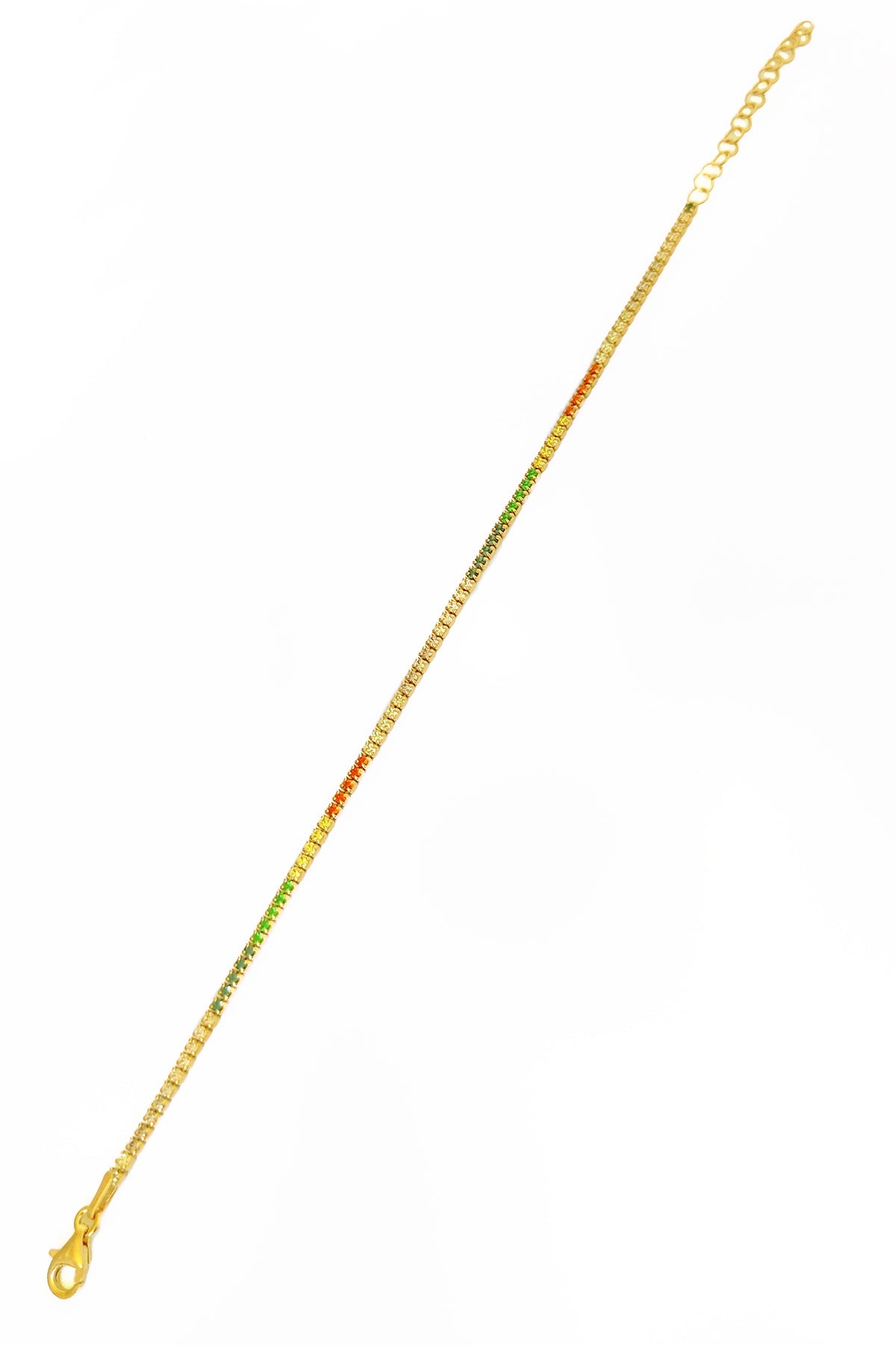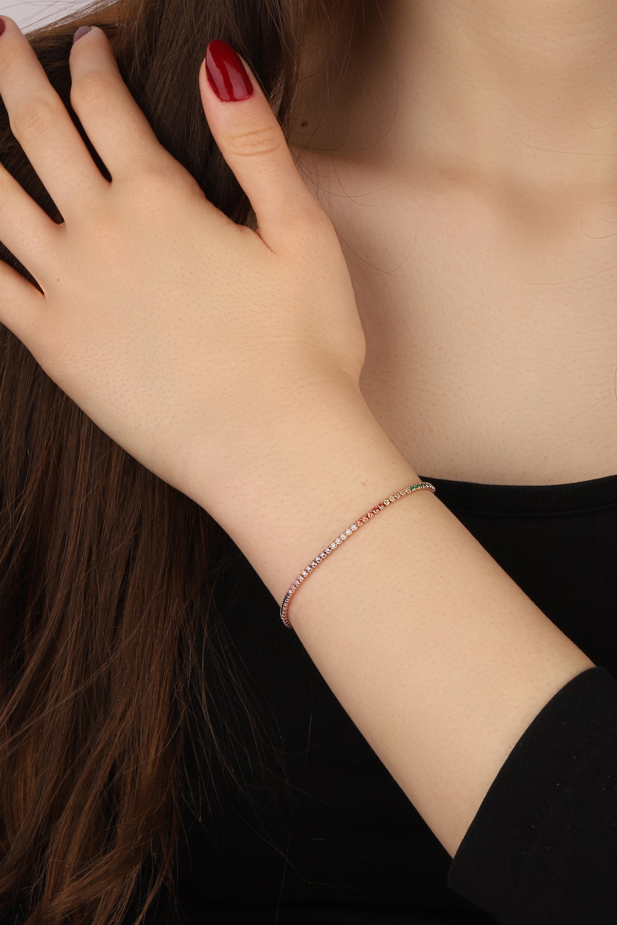 1,5 mm Colorful Stone Tennis Silver Bracelet, Classic Tennis Bracelet Cubic Zirconia and 14K Gold, Rose Gold or Silver Plating