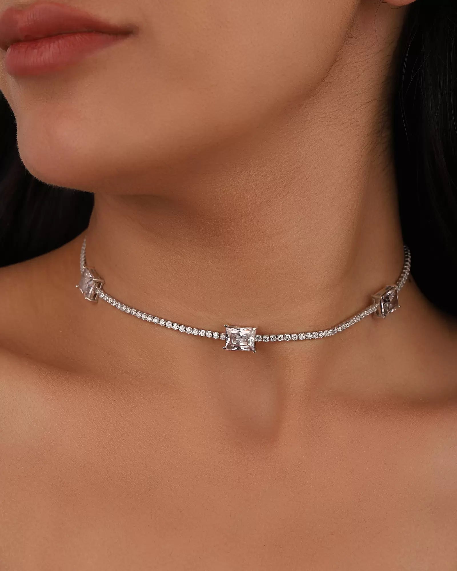 3 Rectangle Stone Tennis Chain Sterling Silver Necklace