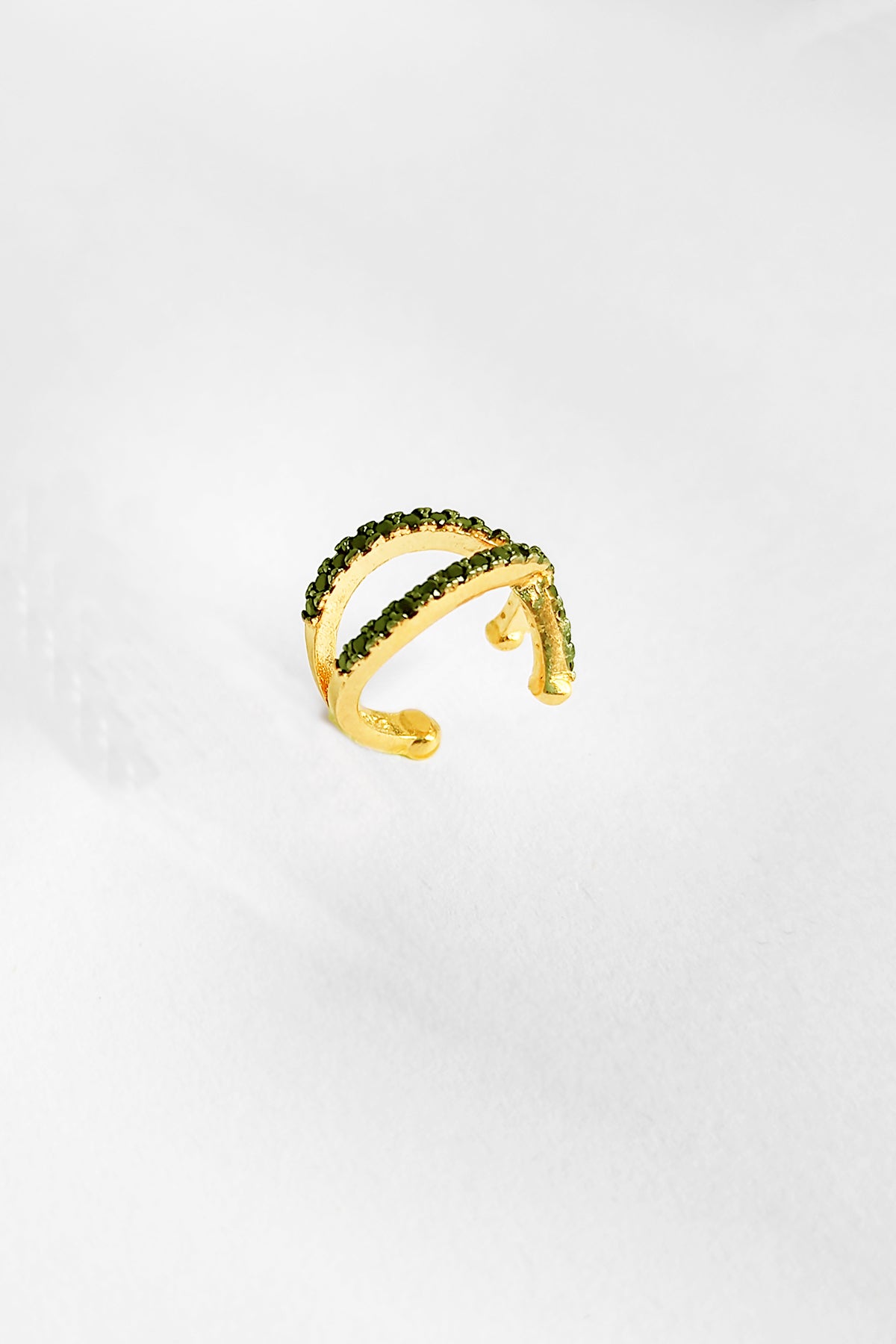 Black Stone Gilded Earring Full Silver Cartilage Earcuff