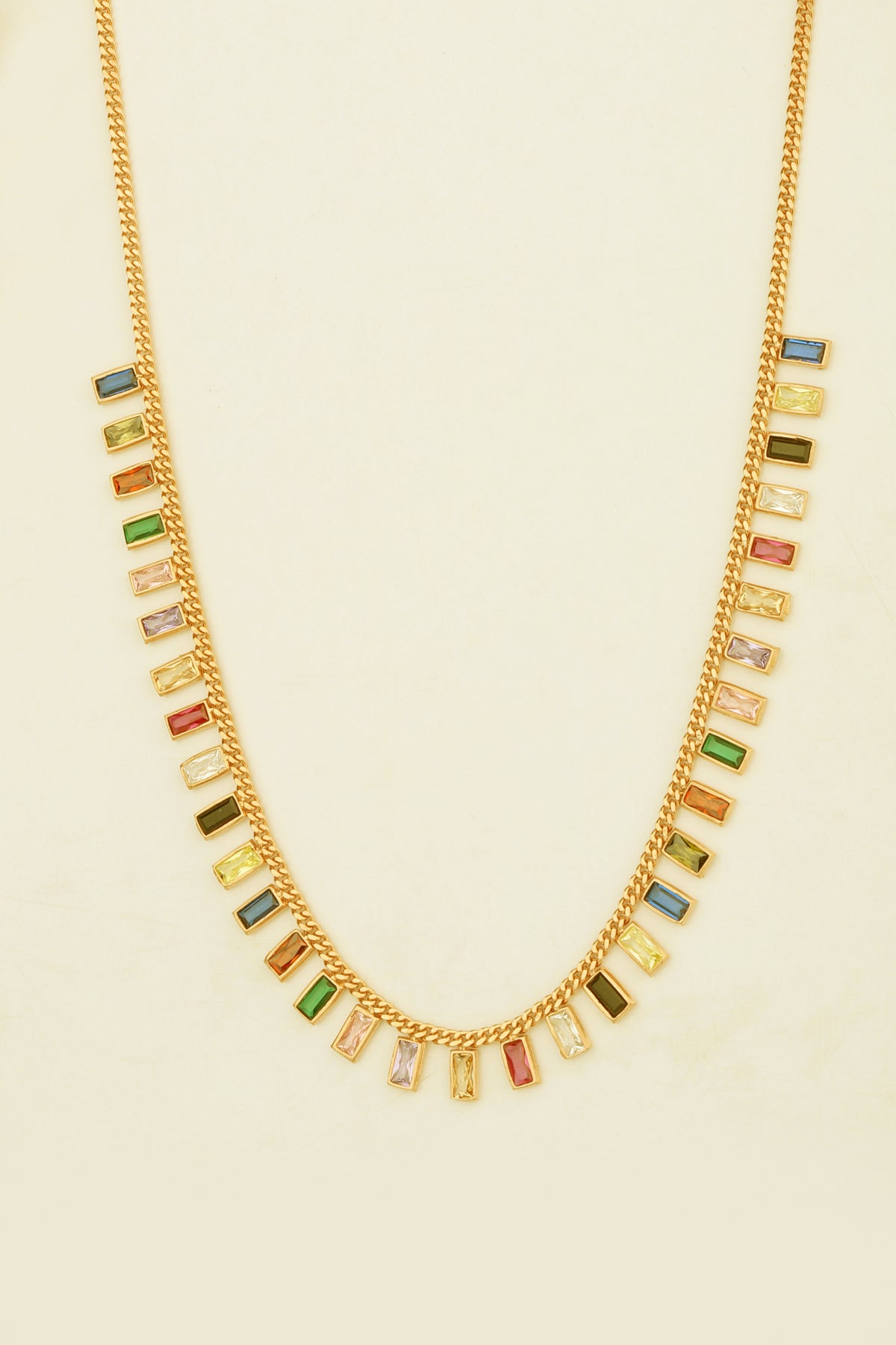 Colorful Baguette Stone Pendant Necklace, Rainbow Multi Color Dangle Choker Necklace, Rainbow Gemstone Necklace, Vibrant Handmade Colorful
