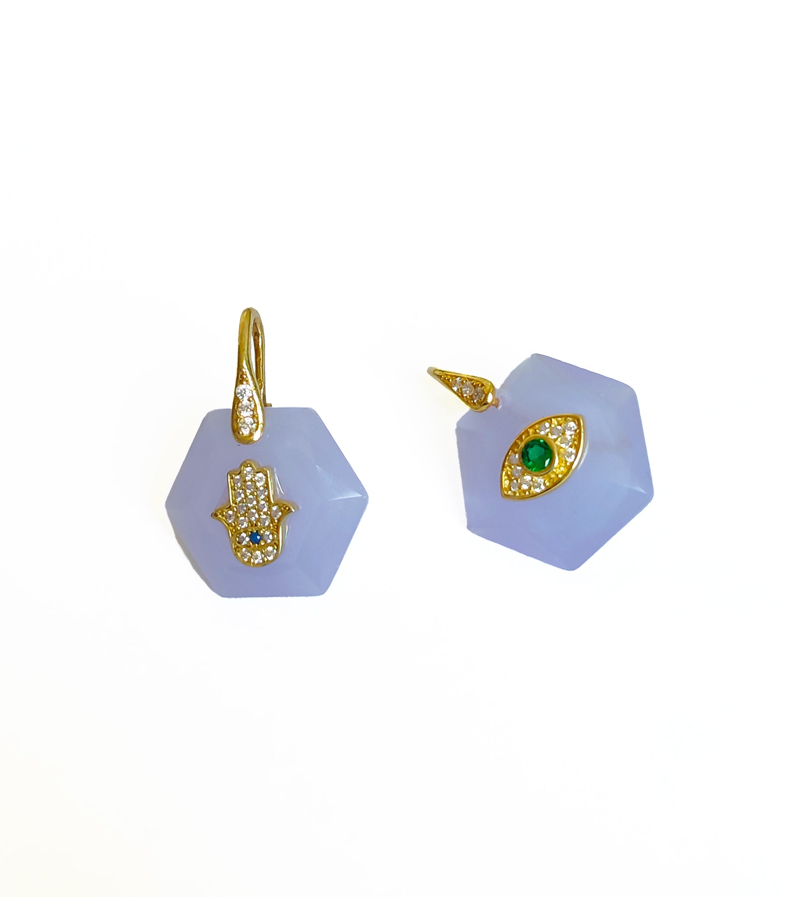 Crystal Purple Stone Silver Hand and Eye Earrings