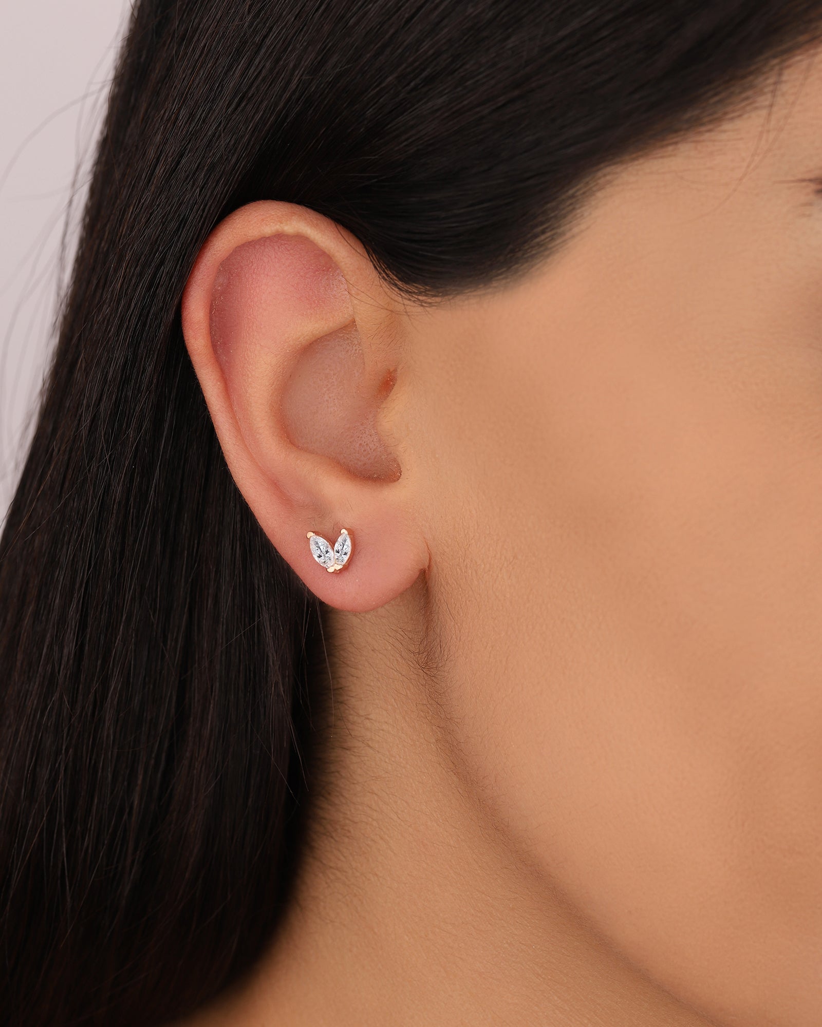 Double Stone Tiny Silver Earrings, Tiny earrings, Pair of silver studs