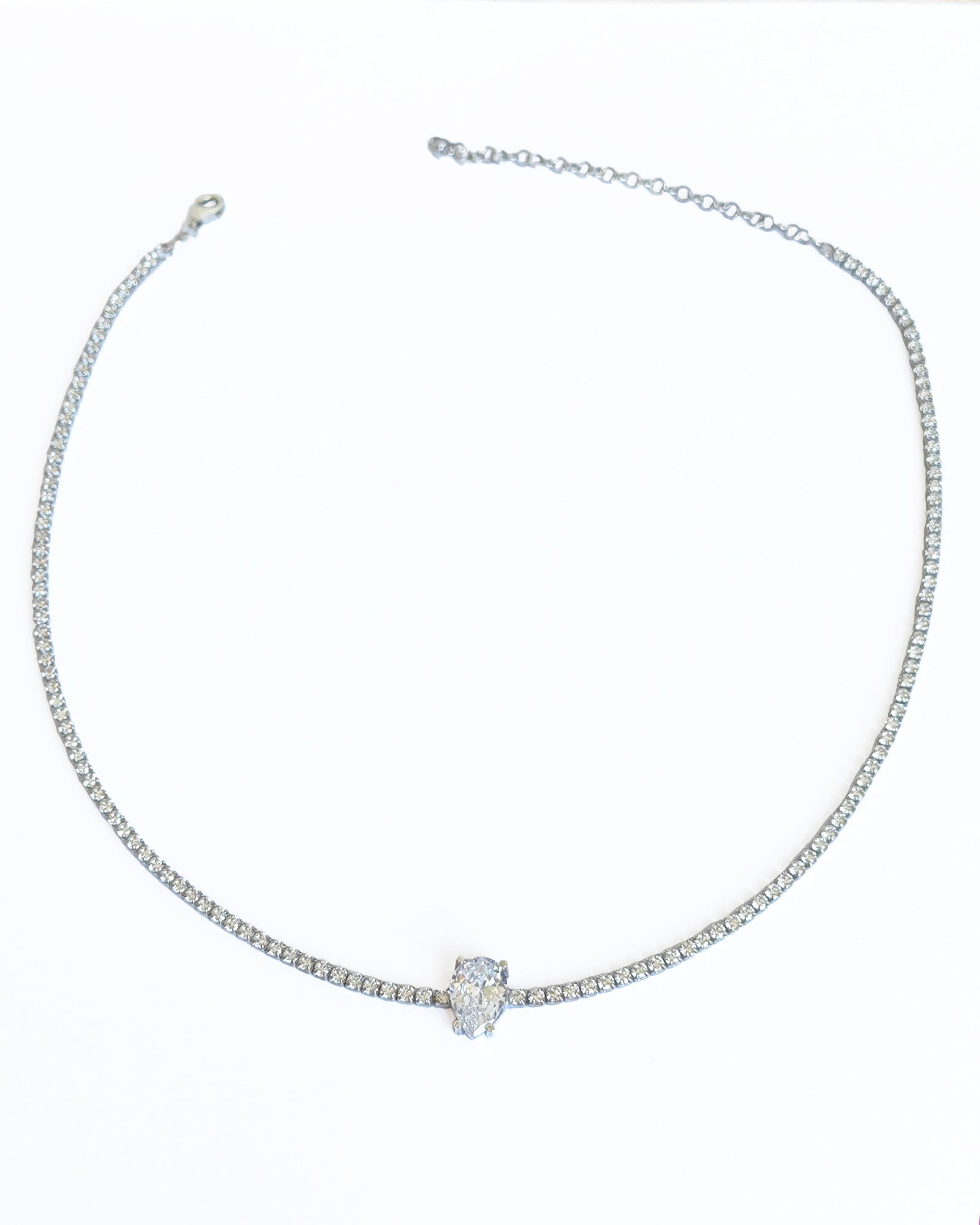 Drop Stone Choker Necklace Cubic Zirconia Stones • Dainty Tennis Choker Necklace