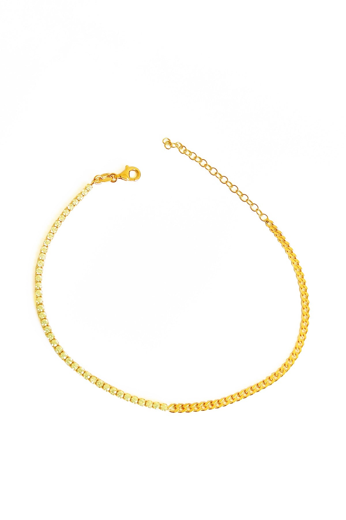 Half Tennis Half Italian Chain Lock Silver Anklet