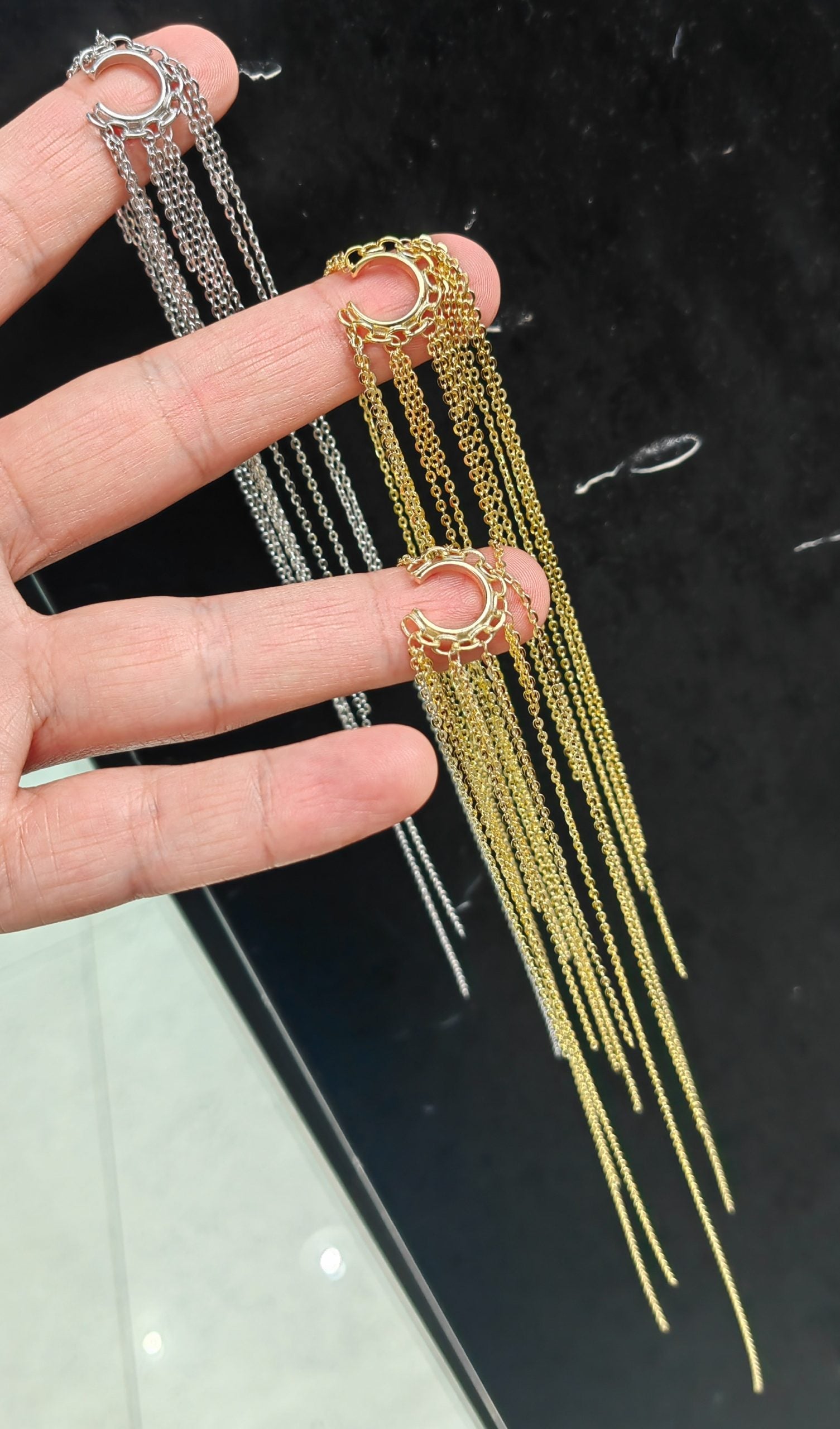 Sterling silver, cuff earrings, chain ear wrap earring, long dangle chain earring, fringe earring, bridal ear cuff, no pierce ear cuff