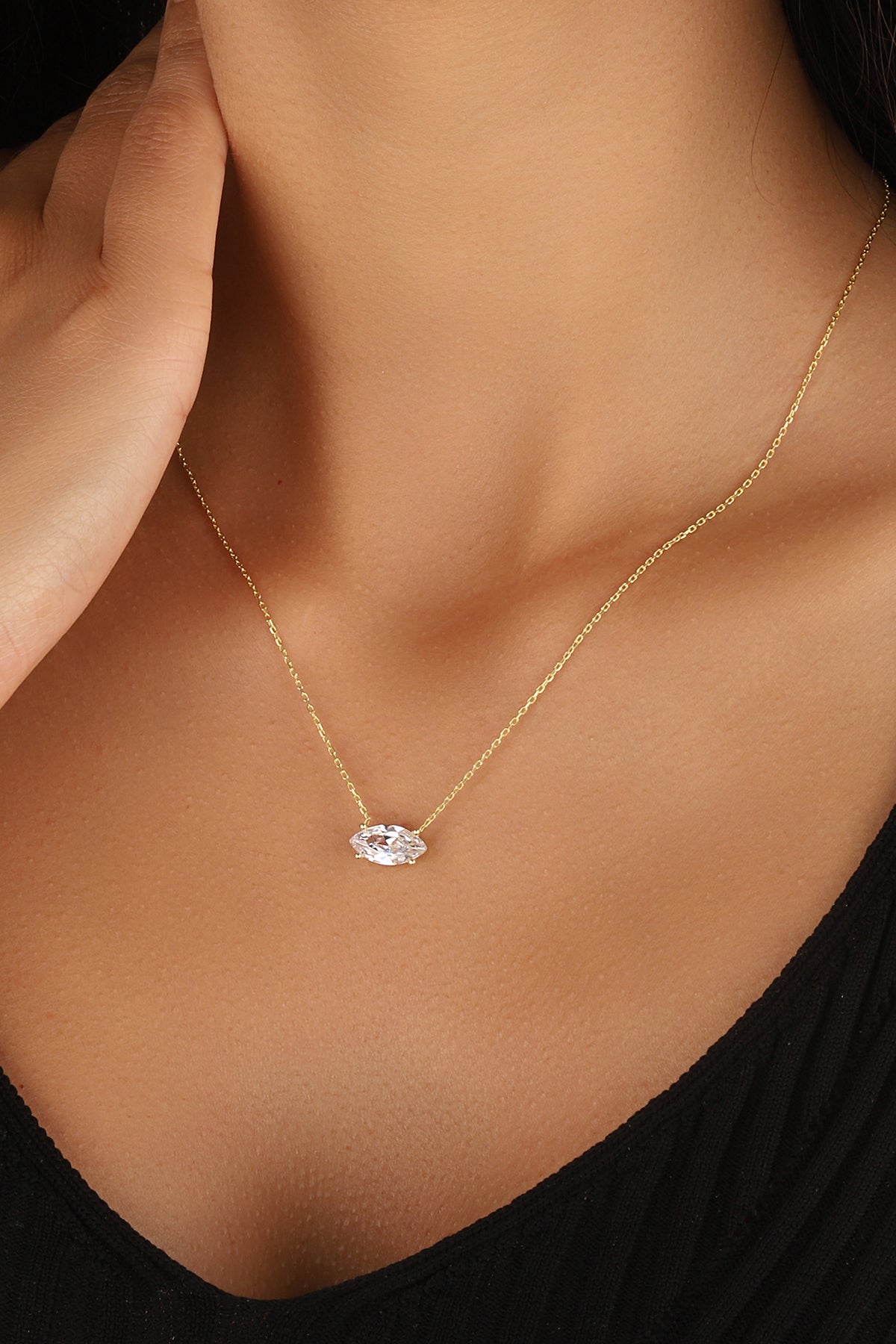 Oval Solitaire Silver Necklace, Solitaire necklace