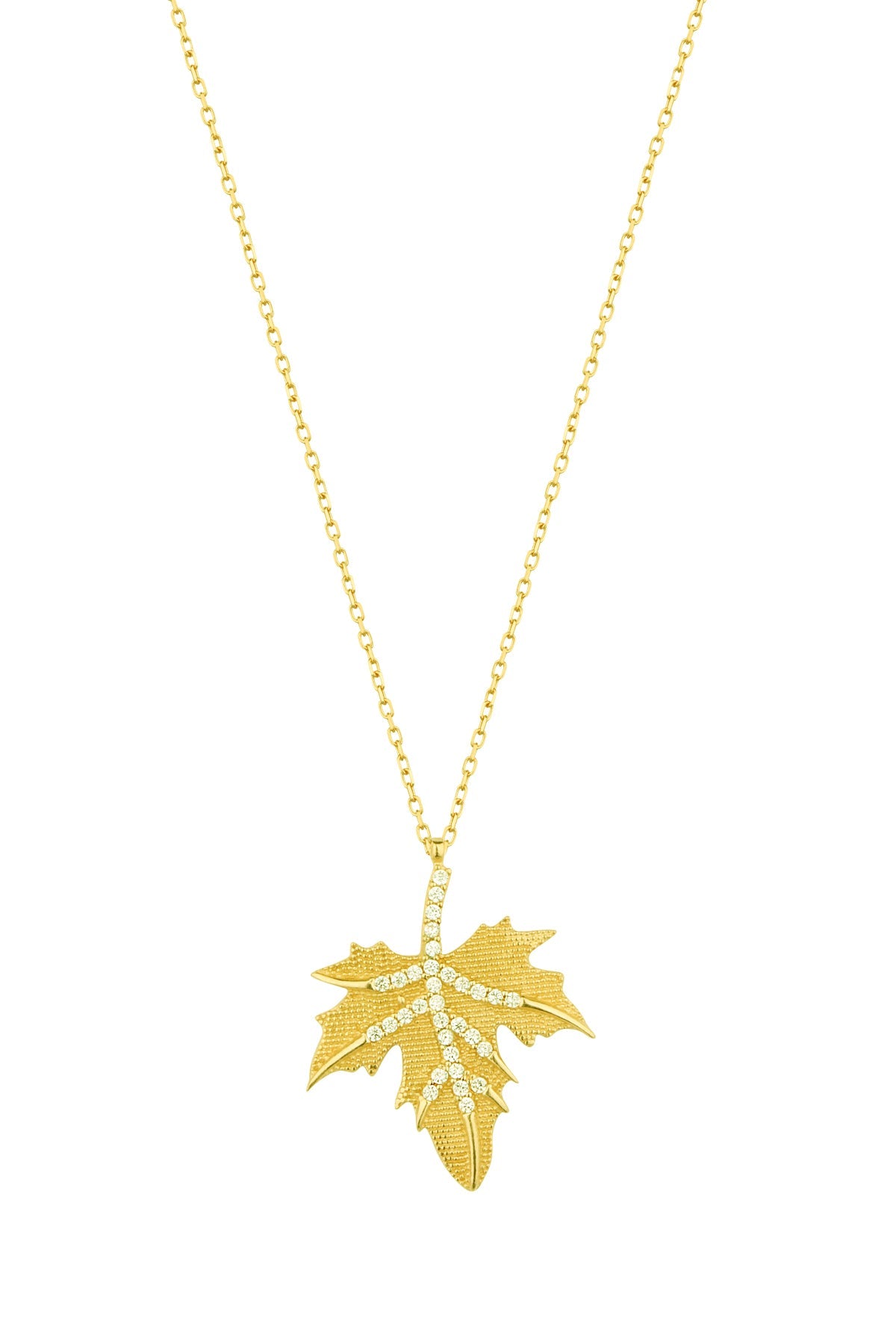 Stone Sycamore Leaf Silver Necklace