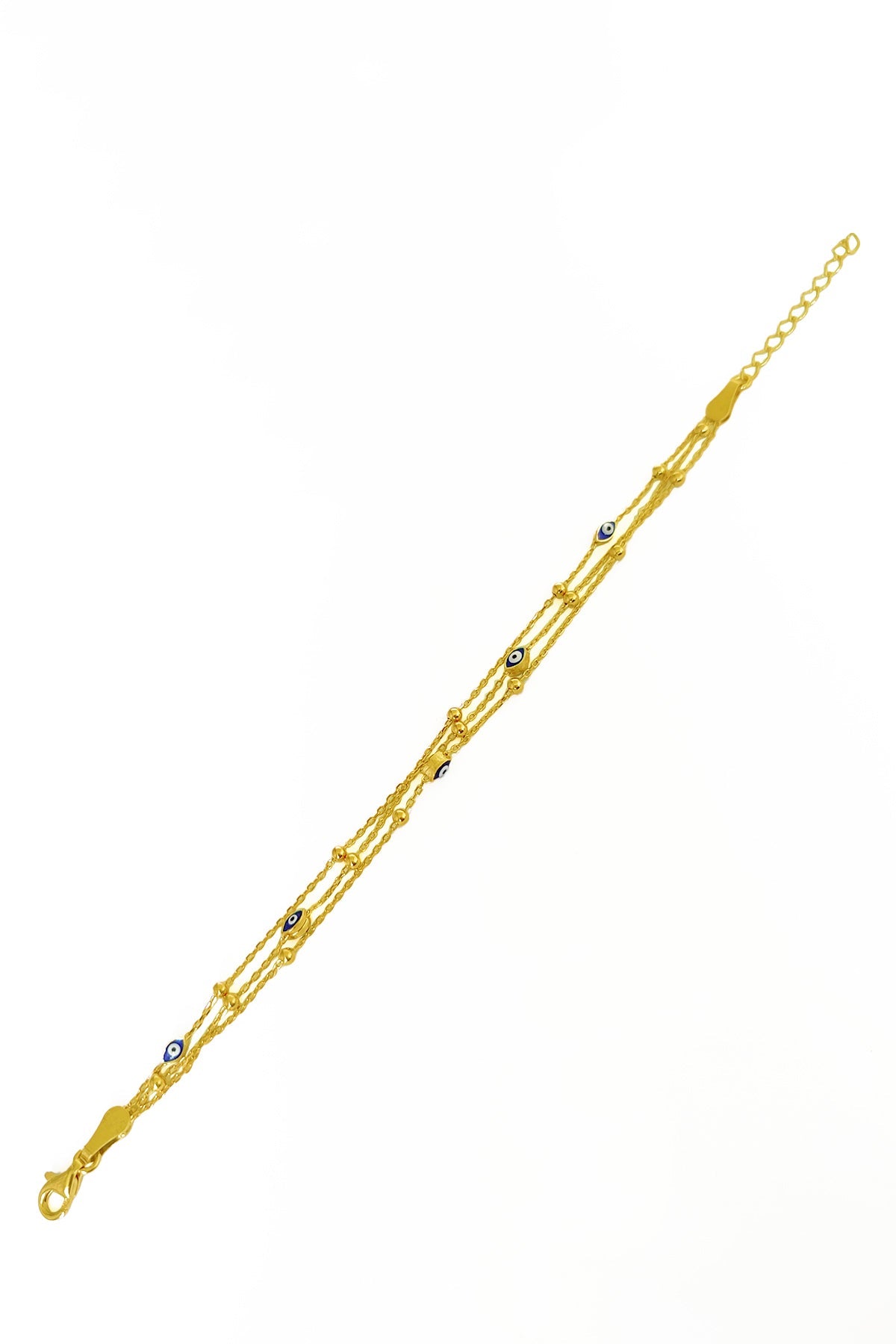 Triple Enamel Evil Eye Beaded Silver Chain Bracelet