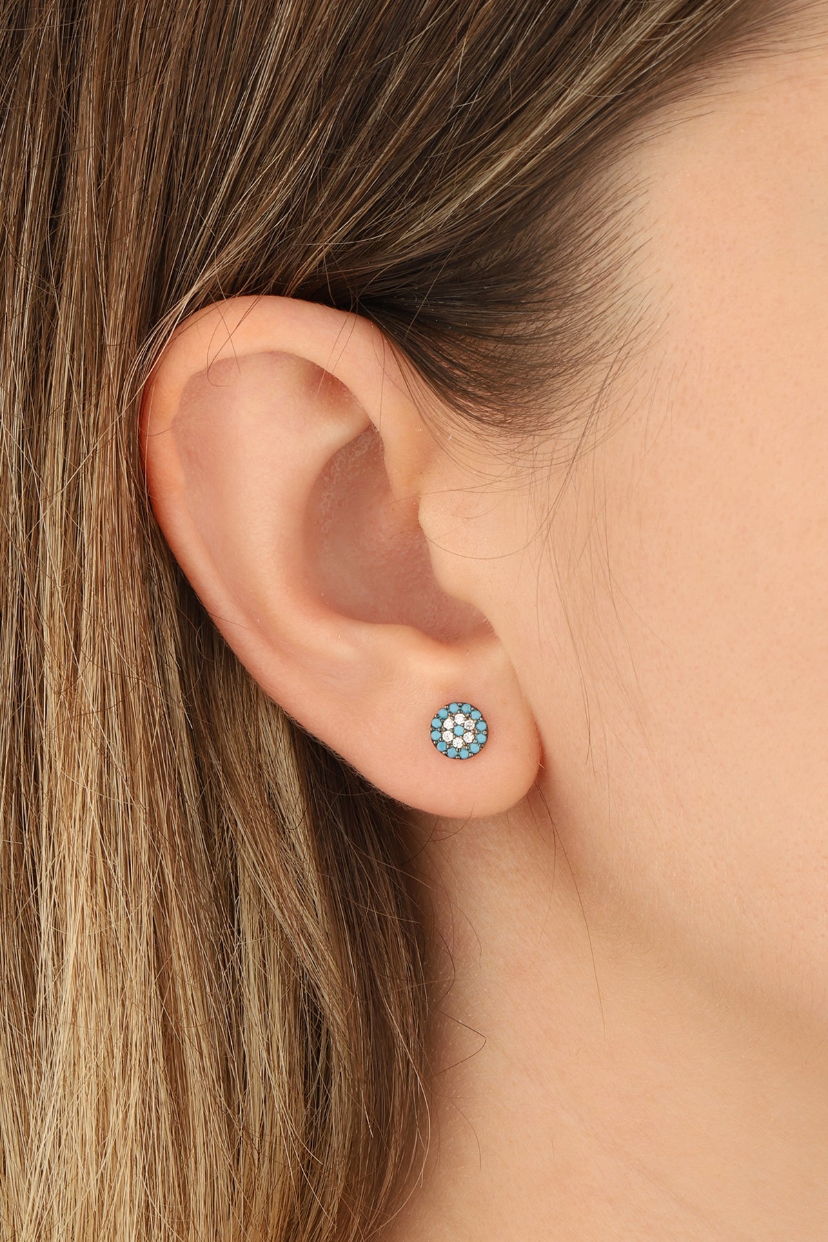 Turquoise Stone Lentil Silver Earrings