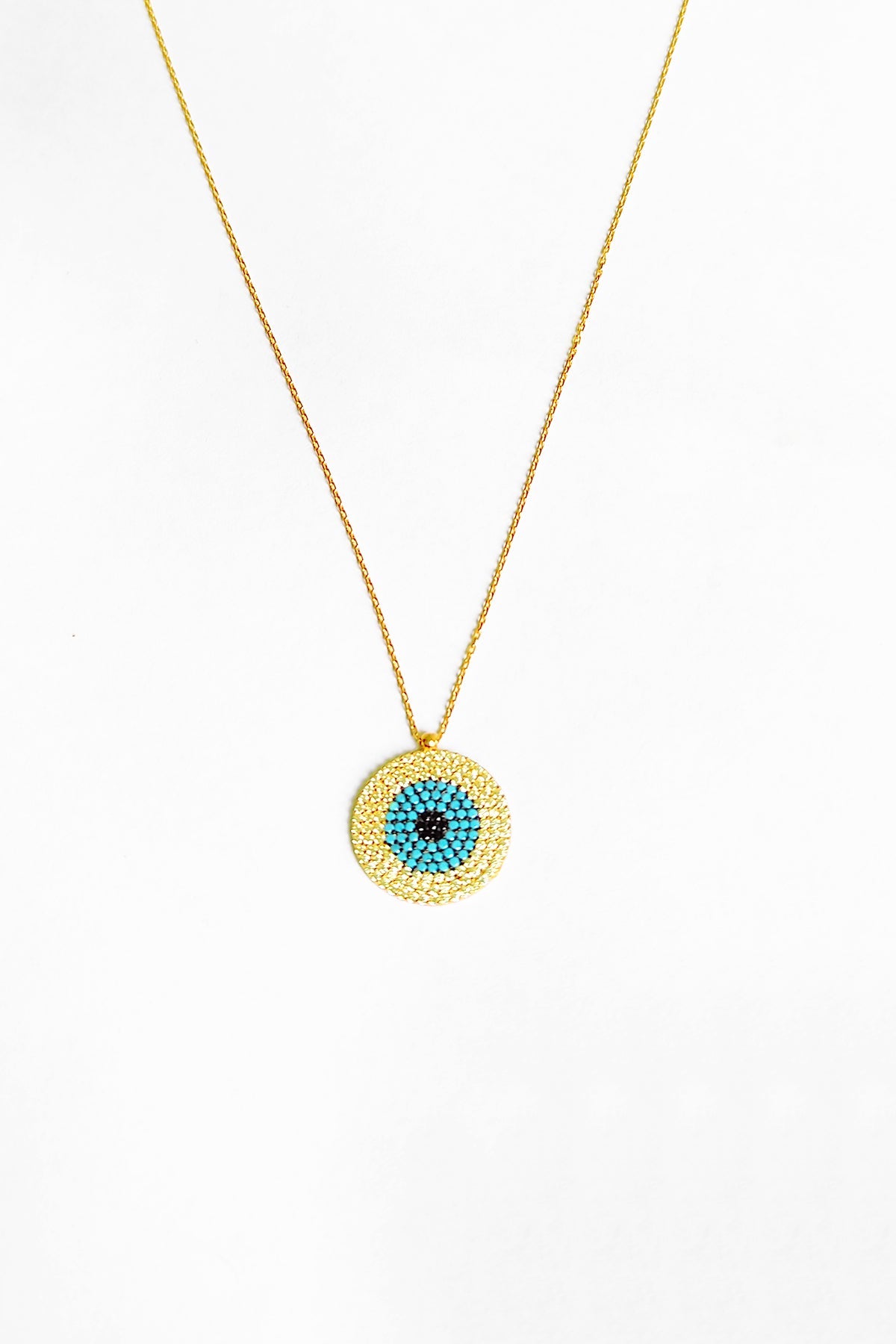Turquoise Stone Silver Evil Eye Necklace