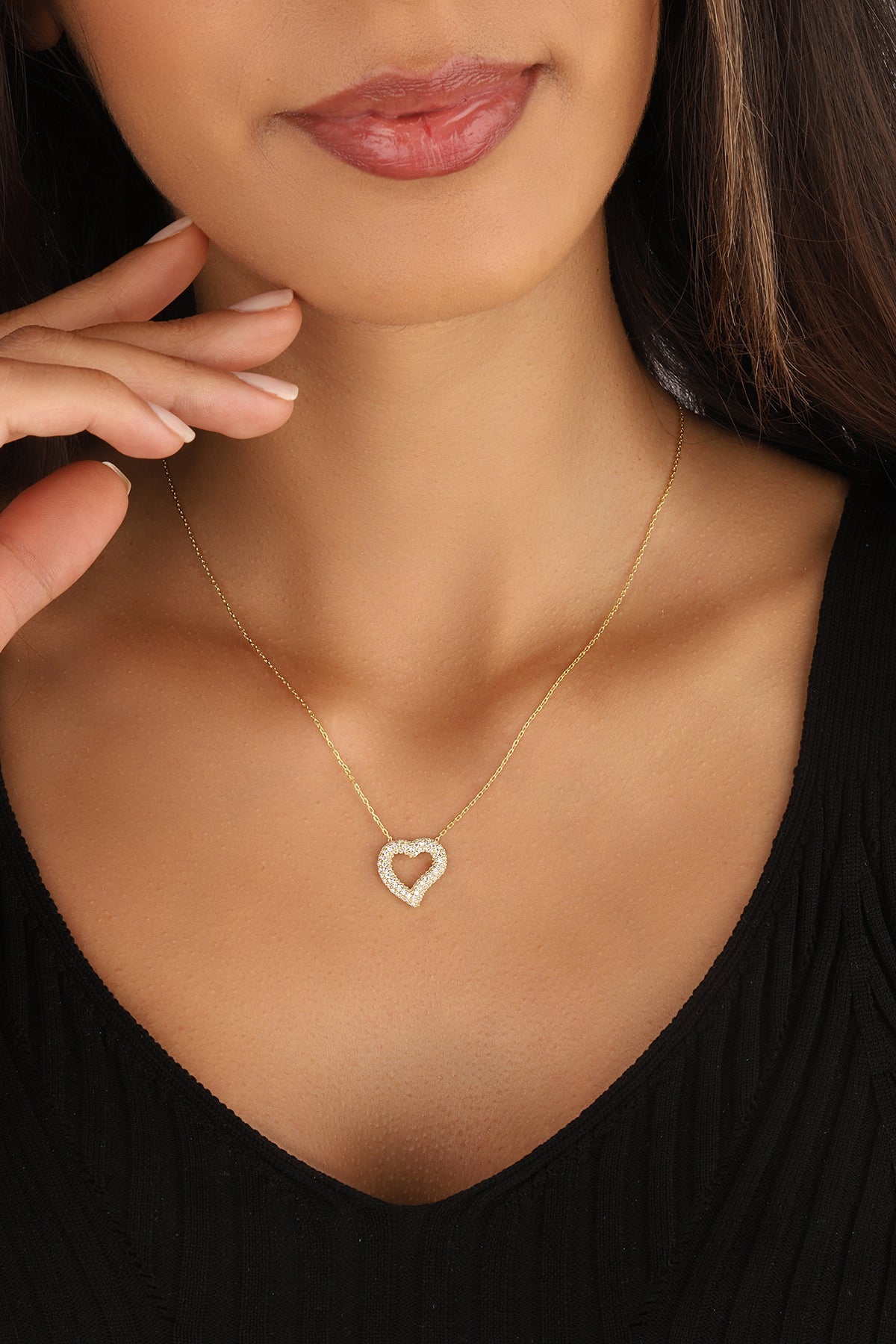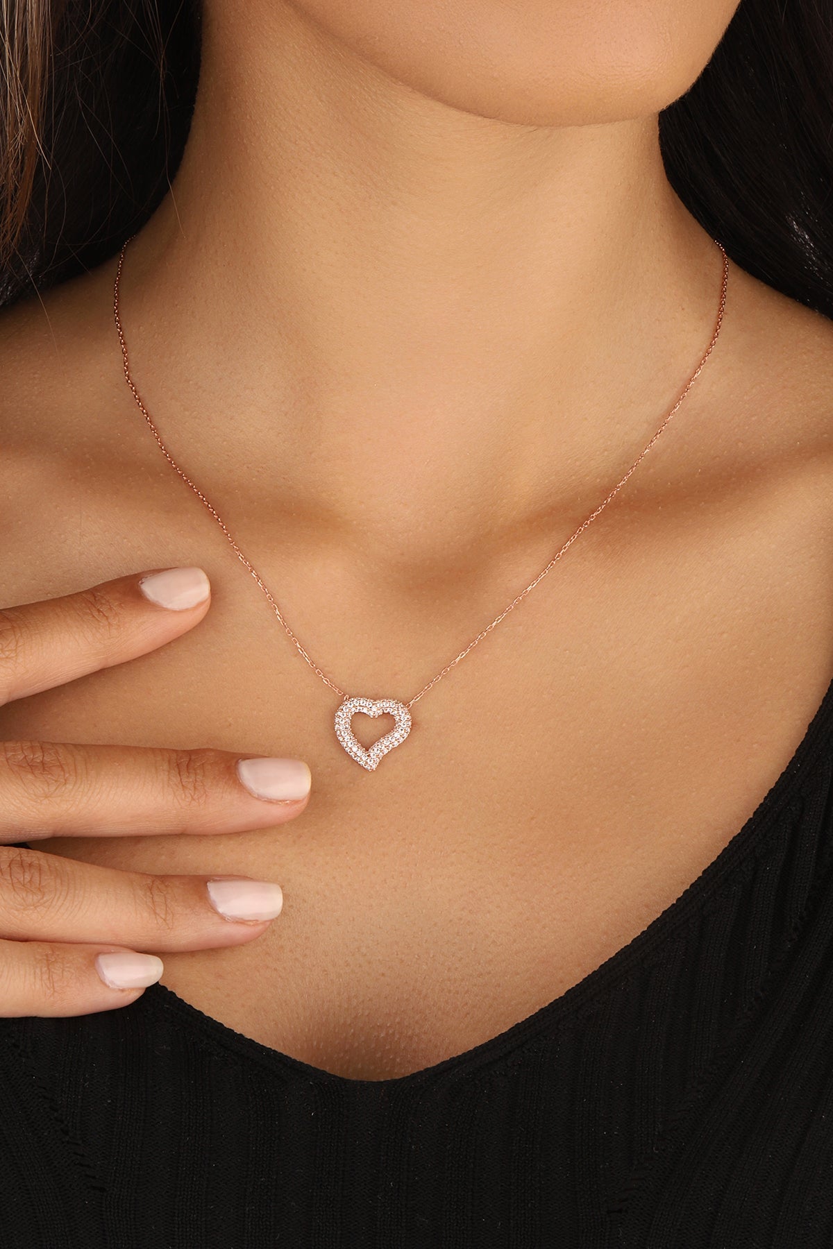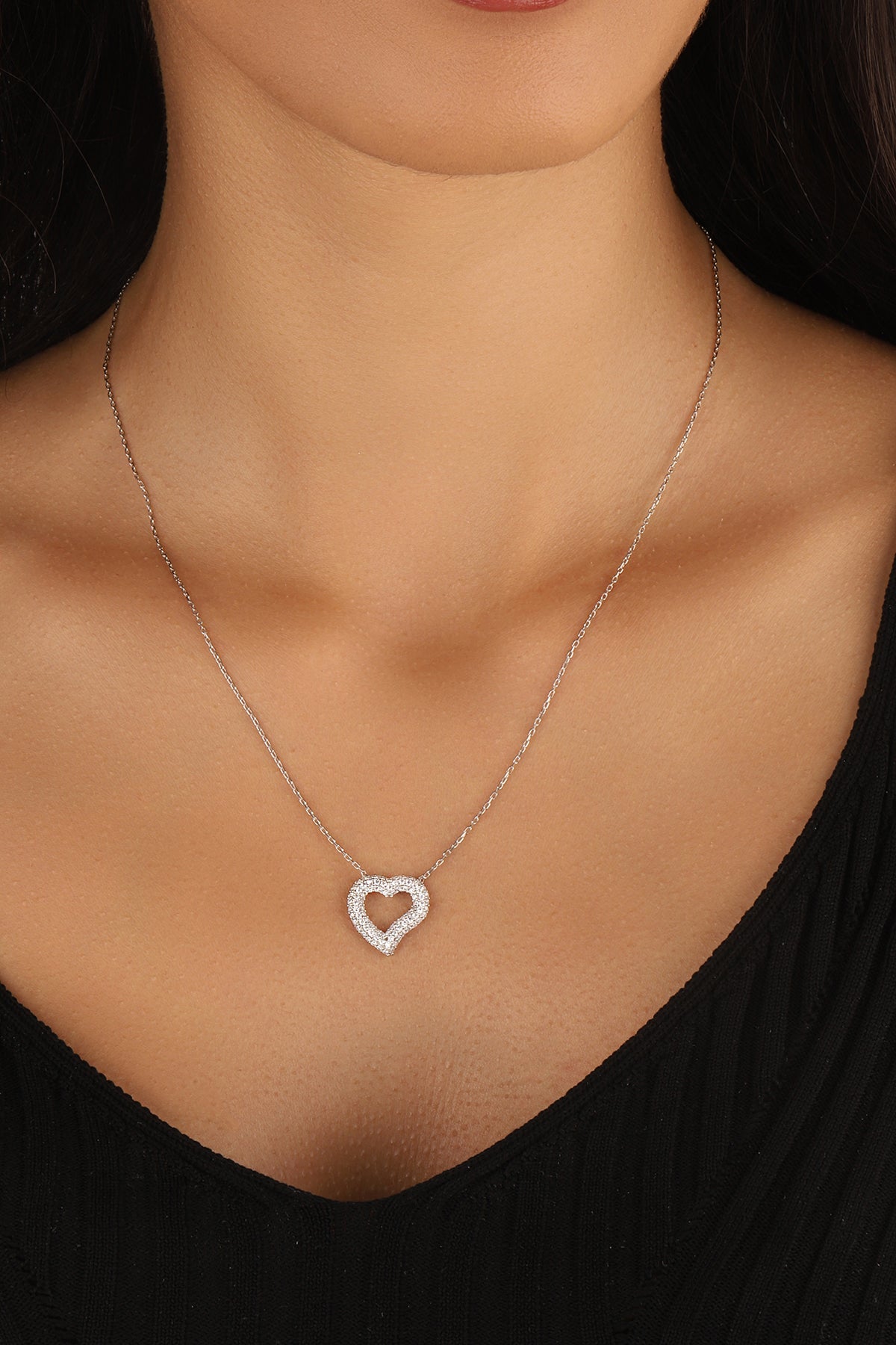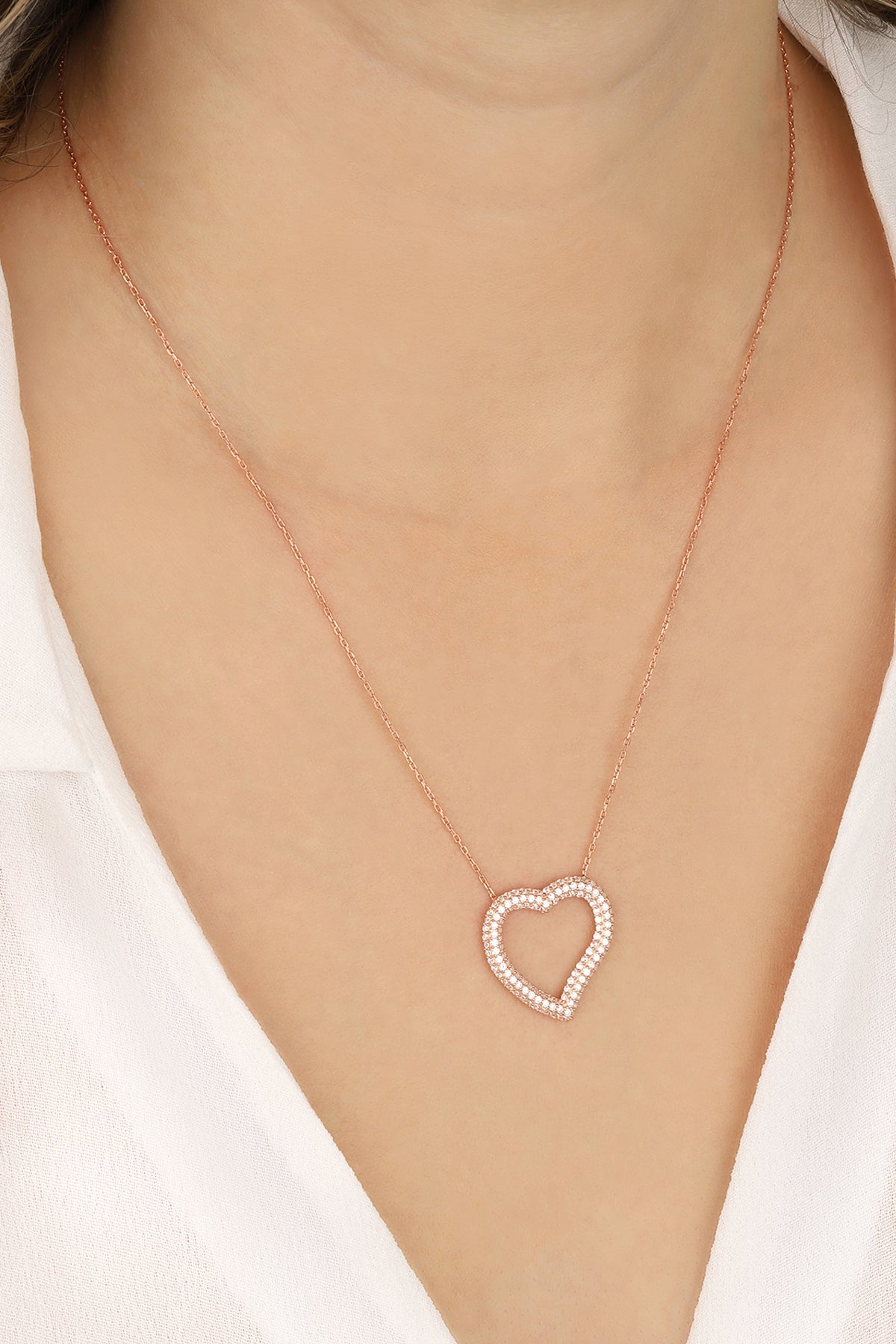 White Stone Big Heart Silver Necklace