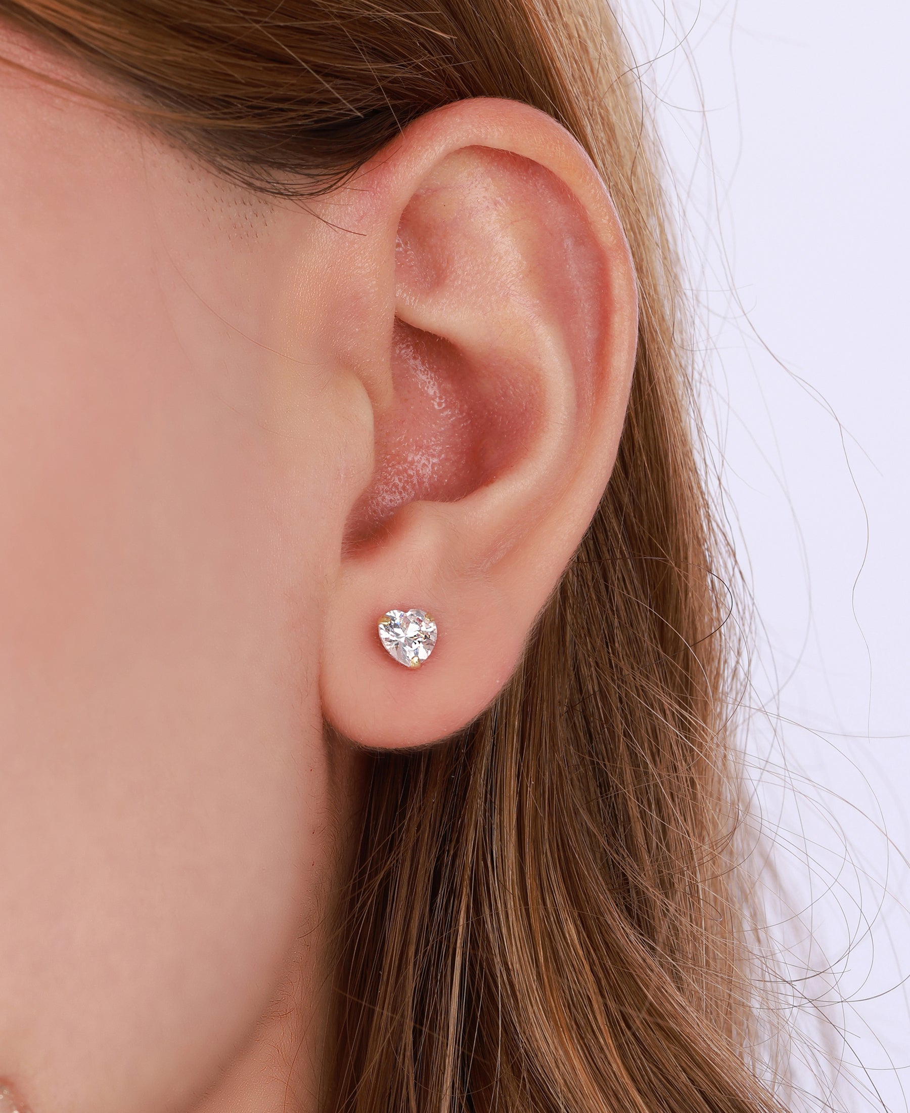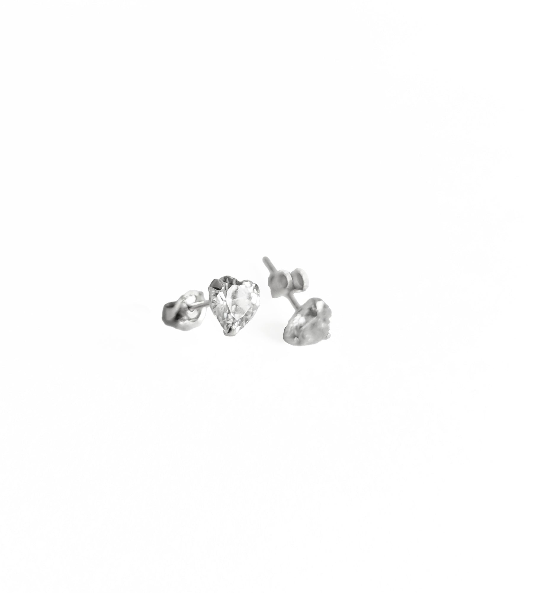 White Stone, Heart Design, Silver, Earrings, Jewelry, Handmade, Unique, Gift, Women, Fashion